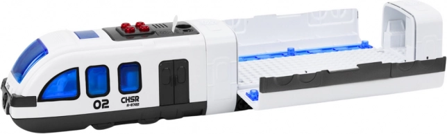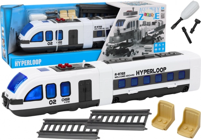 Tento moderní pasažérský vlak v elegantní bílé barvě se šedými detaily nadchne každé dítě, které miluje techniku a železnici. Díky přiloženému šroubováku a šroubům si děti mohou vlak samy rozebrat a znovu smontovat – zábava, která učí trpělivosti i přesnosti. Integrované světelné a zvukové efekty (např. signál odjezdu či jízdy) umocní realističnost hry.