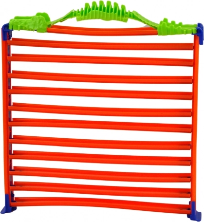 Zábavný set 2v1 kombinuje závodní autodráhu s pętli 360° a víceúrovňový parkovací garáž v jednom. Díky snadnému skládání a praktickému madlu na přenášení si děti užijí akční jízdy i přehledné parkování. Součástí je 8 kovových autíček, 11 parkovacích úrovní a výrazná barevná kombinace pro maximální atraktivitu.