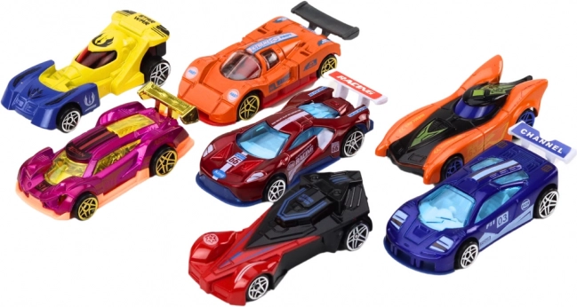 Uvnitř najdete různorodé modely závodních aut v pestrých barvách a stylech, vyrobené z kvalitních materiálů, které zajišťují jejich odolnost a dlouhou životnost. Set obsahuje také doplňky jako semafory a benzínovou stanici, které obohacují hru o realistické prvky a umožňují dětem osvojit si dopravní pravidla.