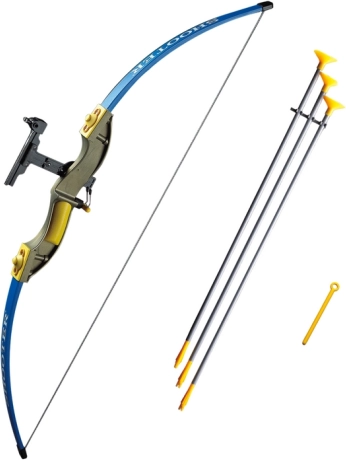 Sada obsahuje impozantní luk, který měří 102 cm na délku a je zhotoven v atraktivních modrých barvách s žlutými a zlatými doplňky. Tři šípy v šedožluté barevné kombinaci jsou zakončeny gumovým přísavkem, což zajišťuje bezpečné použití a minimalizuje riziko zranění.