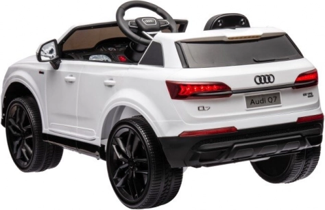 Toto dětské elektrické auto Audi Q7 je ideálním dárkem pro malé milovníky aut. S realistickými detaily, jako jsou fungující přední světla, zrcátka a Audi logo na mřížce, poskytuje vzrušující jízdní zážitek. Navrženo pro bezpečnost a zábavu, auto má černý sedák s pásem, který zajišťuje pohodlnou a bezpečnou jízdu.