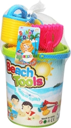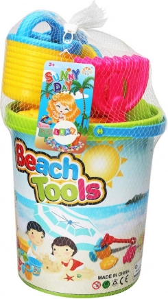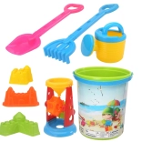 Barevná sada hraček na písek pro děti od 3 let nabízí vše pro kreativní hraní na pláži i v pískovišti: velké vědro s obrázky, mlýnek na písek, lopatku, hrábky, 3 formičky a konvičku. Vyrobeno z odolných a bezpečných materiálů, s jasnými barvami pro rozvoj fantazie a motoriky. Splňuje CE a normu EN71.