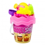 Objevte kouzelnou sadu na písek s motivem sladkostí, která rozzáří každou pláž i pískoviště. Růžový kyblík se sítkem na víku usnadní oddělování písku a vody, barevná konvička pomůže zvlhčit písek pro lepší tvarování a praktická lopatka zjednoduší kopání a plnění. Čtyři formičky ve veselých barvách vybízejí k tvoření zmrzlin, sušenek či dalších pískových dobrot.