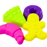 Čtyři výrazně barevné formičky ve tvarech jako donut, perníček či croissant promění pískoviště v pekařství plné fantazie.