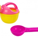 Barevná konvička usnadňuje zvlhčování písku a kompaktní lopatka skvěle padne do dětské ruky pro kopání i přenášení.