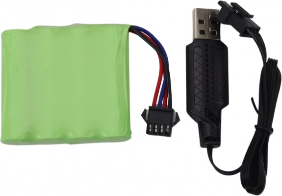 V balení najdete dobíjecí akumulátor 6 V 500 mAh a USB kabel pro pohodlné nabíjení. Dálkové ovládání (2× AA, nejsou součástí) nabízí intuitivní řízení a rychlou odezvu. Hračka splňuje normy CE a EN71, takže se můžete spolehnout na bezpečnost a kvalitu.
