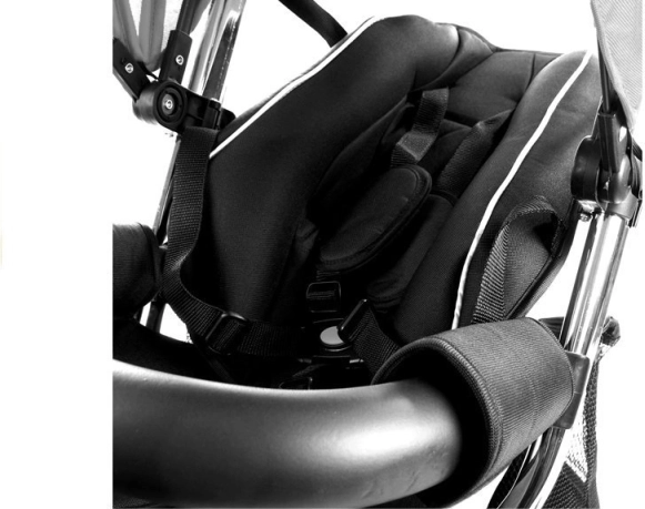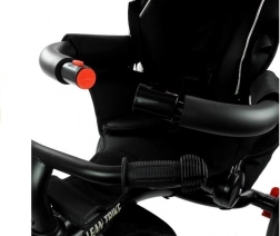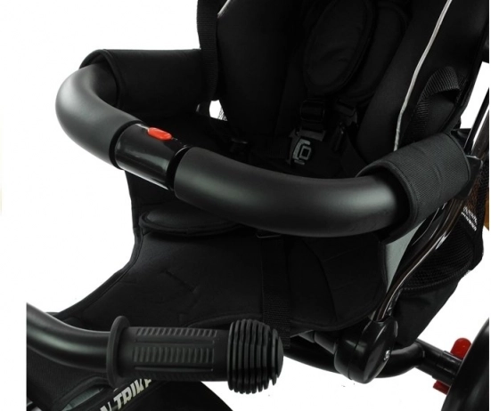 Bezpečnost zajišťují pásy a ochranné madlo, které drží dítě v bezpečí během jízdy.