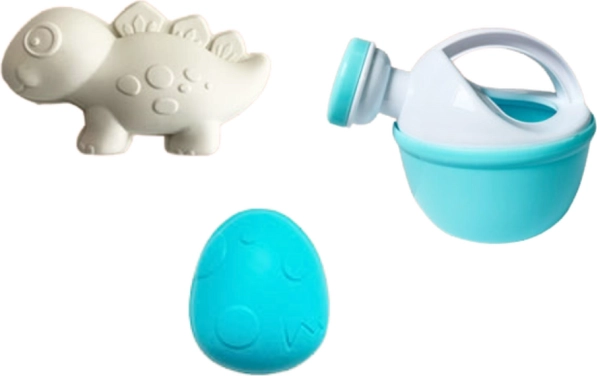 Konvička usnadní zalévání a modelování mokrého písku, zatímco tematické dino doplňky podpoří fantazii a příběhovou hru na pláži i na zahradě.