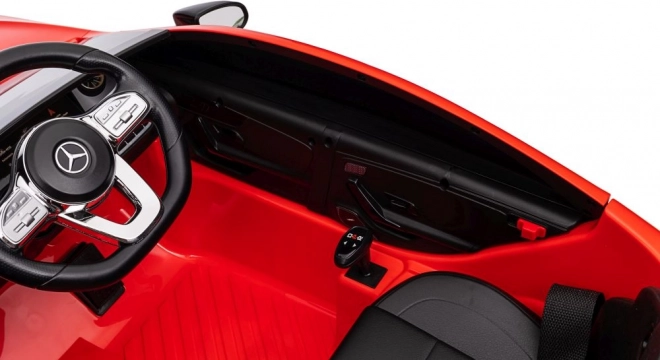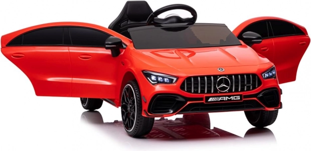 Malý řidič, velká radost – to je červené elektrické auto MERCEDES CLA 45 S AMG 4x4. Díky promyšleným detailům, jako jsou otevírací dveře, LED světla a věrně zpracovaná maska s logem AMG, působí vozítko maximálně realisticky a zaujme na první pohled.