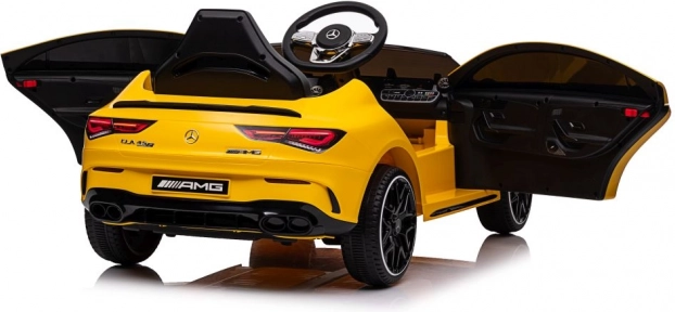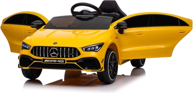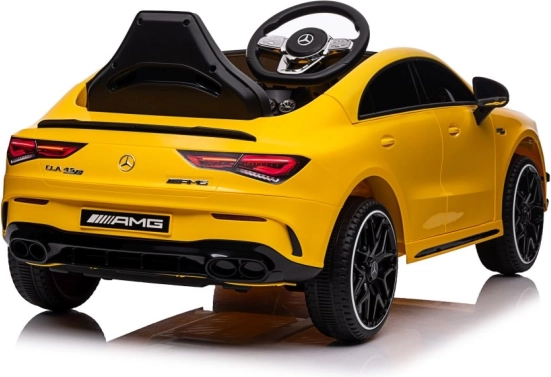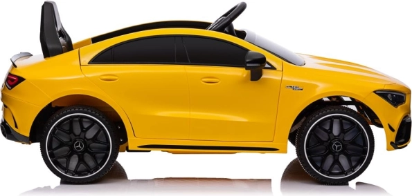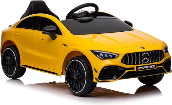 Licencované elektrické auto MERCEDES CLA 45 S AMG potěší každého malého fanouška sportovních vozů. Žluté provedení, věrné logo AMG a realistické prvky jako světla, volant a palubní prvky dotvářejí opravdový zážitek z jízdy. Robustní plastové zpracování a pohodlné sedadlo zajistí komfort i při delší vyjížďce.
