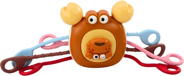 Interaktivní krab je navržen pro malé ručičky – snadno se uchopí, je příjemně měkký a díky bezpečnému, netoxickému silikonu je ideální jako kousátko pro zoubkující děti. Různé povrchy podporují smyslový rozvoj a podněcují přirozenou zvídavost.