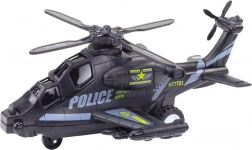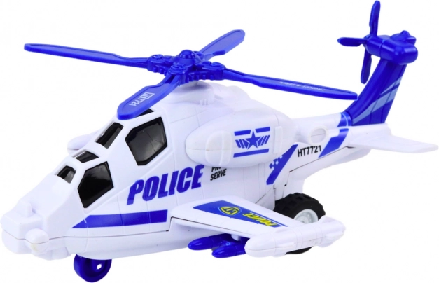 Policejní helikoptéra je vybavena frikčním pohonem - stačí ji postrčit vpřed a sama překoná dlouhé vzdálenosti, simulující realistické lety a přistání. Navíc blikající světla oživí hru, přidávajíce realismus každé policejní akci. Zabudované zvukové efekty, které se aktivují během hry, dělají každou misi ještě vzrušující. Pevná konstrukce z odolných materiálů zajišťuje dlouhé hodiny bezpečné hry, a jednoduchý mechanismus frikčního pohonu je ideální pro malé ručky.
