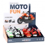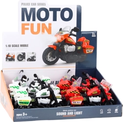 Zmenšený model policejního motocyklu v měřítku 1:10 přináší realistické světelné a zvukové efekty, které podporují představivost a kreativitu při hře. Hračka je dostupná ve dvou barvách: bílá a červená. Při nákupu si vyberte barvu, jinak bude vybrána náhodně.