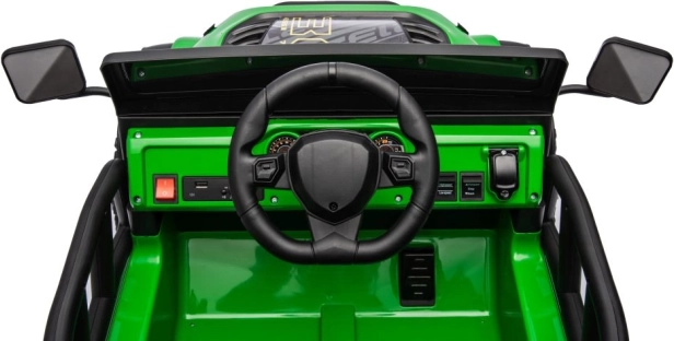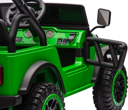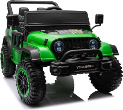 Naše zelené dětské auto na baterii je navrženo tak, aby přineslo maximální zábavu a zároveň posílilo kreativní hru. Toto autíčko napodobující terénní vozidlo disponuje realistickými detaily, jako jsou velké kola pro různé terény, robustní body s rolovacím rámem a bezpečnostními zrcátky. Vyrobeno převážně z odolného plastu, toto autíčko je stvořeno pro venkovní hry.