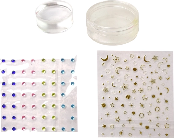 - Kreativní zdobení: laky, razítka, šablony, nálepky a kamínky pro nekonečné kombinace.