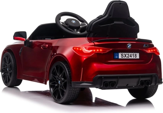 Stylové dětské elektrické autíčko BMW M4 v lakované červené barvě nabídne realistický vzhled, sportovní detaily a zábavnou jízdu pro malé řidiče. Díky odolné konstrukci a propracovaným prvkům, jako jsou světla, volant a otevírací prvky, je ideální volbou pro bezpečné a atraktivní hraní doma i venku.