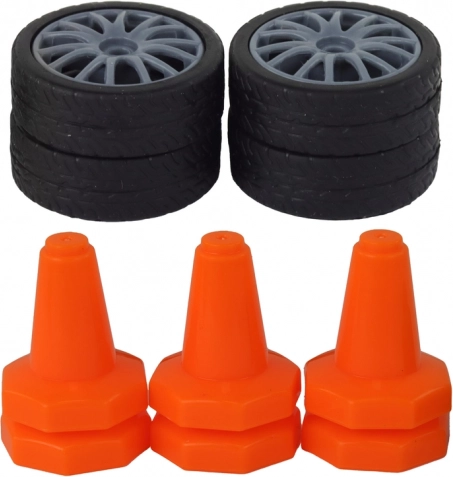 Součástí balení je 6 výrazných oranžových kuželů pro stavbu překážkové dráhy, takže můžete trénovat manévry a zkoušet nové triky. Auto dosahuje rychlosti přes 15 km/h, což zaručuje dynamickou jízdu a porci adrenalinu pro začátečníky i pokročilé.