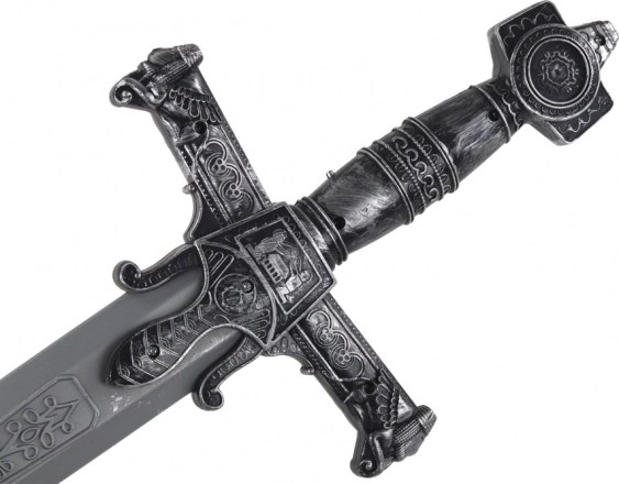 Tento detailně zpracovaný plastový meč přináší autentický středověký vzhled bez ostrých hran, takže je skvělou volbou pro bezpečnou dětskou zábavu. Zdobená rukojeť dodává meči elegantní, historický nádech, zatímco efekty zvuku bitvy umocní atmosféru každého dobrodružství.