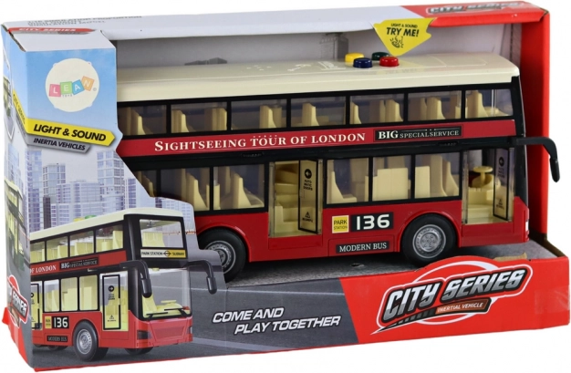 Vkusný červený autobus patrový je ideální pro děti, které milují městské vozidla. Disponuje třecím pohonem, což usnadňuje pohyb. Dítěti stačí autobus tlačit, aby se pohyboval.
