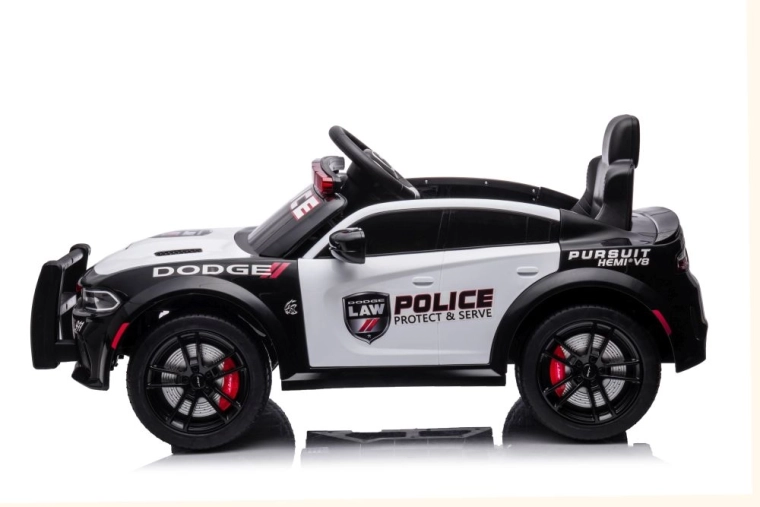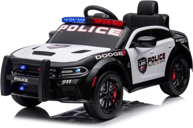Dětské elektrické auto DODGE Charger v černo-bílé policejní edici nabízí autentický zážitek z jízdy – od funkčních LED majáků a předních světel až po výrazné policejní polepy. Robustní konstrukce a pohodlné sedadlo zajistí stabilitu a komfort, zatímco intuitivní ovládání podnítí přirozenou radost z řízení.
