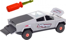 Model v moderní šedé barvě je vyroben z odolných materiálů pro dlouhou životnost a bezpečné hraní. Součástí balení je šroubovák přizpůsobený dětským rukám, takže montáž i demontáž je snadná a intuitivní.