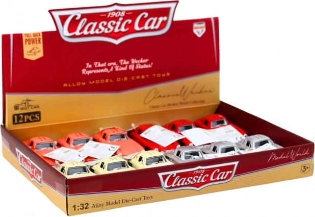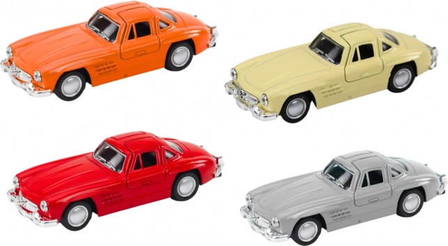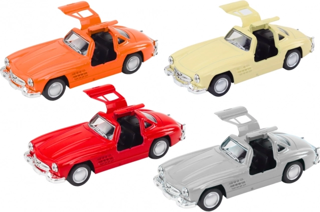 Klasické auto v měřítku 1:32 potěší všechny milovníky retro automobilů. Kovové provedení, autentické detaily, otevírací dveře vzhůru a setrvačníkový pohon pro zábavnou jízdu. Ideální pro děti od 3 let i dospělé sběratele, s certifikací CE a shodou s EN71.