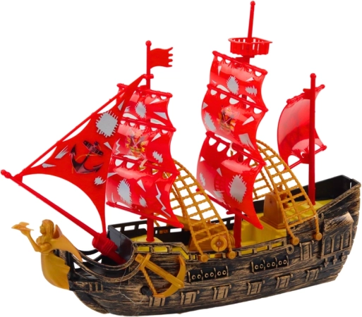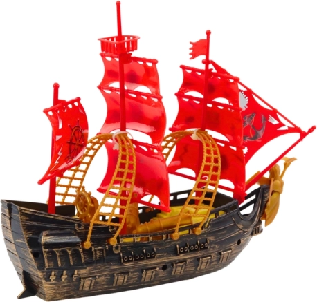 Tato pirátská loď v elegantní zlatohnědé barvě s výraznými červenými plachtami přináší dětem atmosféru tajemných námořních výprav. Realistické detaily, děla a pirátské symboly podněcují fantazii a zvou k objevování pokladů i k napínavým soubojům na vlnách.