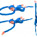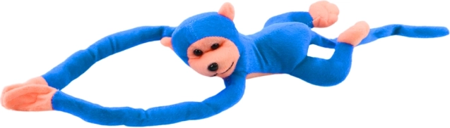 Roztomilá plyšová opice v modré barvě o délce 80 cm je ideální parťák na mazlení i hraní. Má dlouhé končetiny s praktickými pásky na suchý zip pro snadné připevnění na ruku či nábytek a po stisknutí bříška vydává zvuk. Jemný, hebký materiál a certifikace CE dle EN71 potěší rodiče i děti od 3 let.