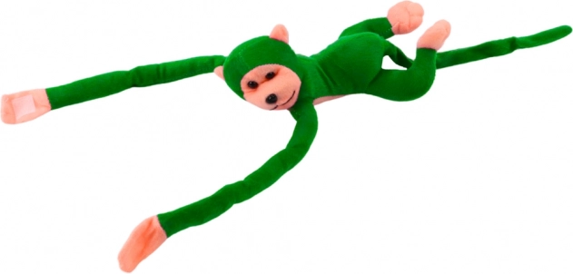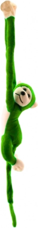 Roztomilá plyšová opička v sytě zelené barvě potěší každé dítě i dospělého. Má dlouhé končetiny s pásky na suchý zip pro zavěšení či objímání, je mimořádně hebká a po stisknutí bříška vydává zvuk. Skvělý dárek do dětského pokoje i na cesty.