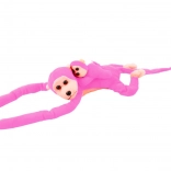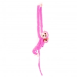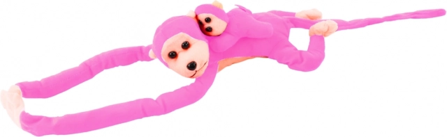 Roztomilá růžová plyšová opička s mládětem o délce 70 cm je měkoučký kamarád pro děti. Díky dlouhým končetinám s připínáním na suchý zip ji snadno zavěsíte na postýlku či batoh. Hebký materiál, pohodlné mazlení a certifikace CE a EN71 z ní dělají bezpečnou a zábavnou hračku pro děti od 3 let.