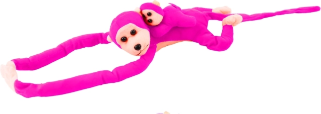 Opička má dlouhé končetiny, které umožňují snadné zavěšení. Jemný materiál je zárukou bezpečného a příjemného hraní.