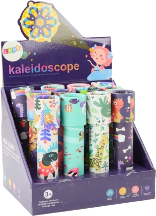 Když se dítě podívá skrz kaleidoskop a otočí tubusem, vznikají neustále se měnící symetrické obrazce plné jasných barev. Každé pootočení přináší novou kombinaci tvarů a odstínů, která přitahuje pozornost a podněcuje fantasii. Barevné motivy na obalu navíc dělají z kaleidoskopu atraktivní hračku i dárkový tip.