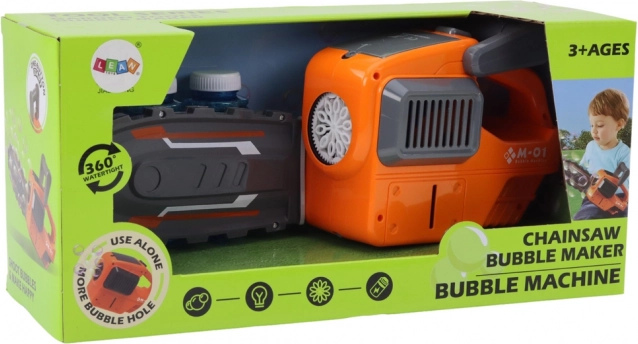 Oranžový bublifuk ve tvaru motorové pily promění každé venkovní dobrodružství v magickou podívanou plnou bublin. Díky pohodlné rukojeti, snadnému ovládání a dvěma lahvičkám náplně v balení si děti užijí spoustu zábavy hned po vybalení. Vhodné pro děti od 3 let, s certifikací CE a v souladu s normou EN71.