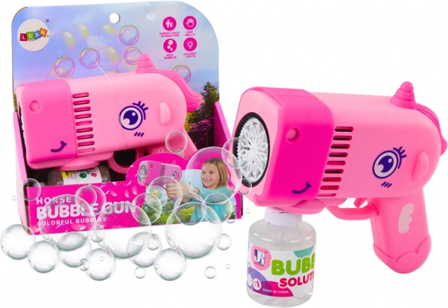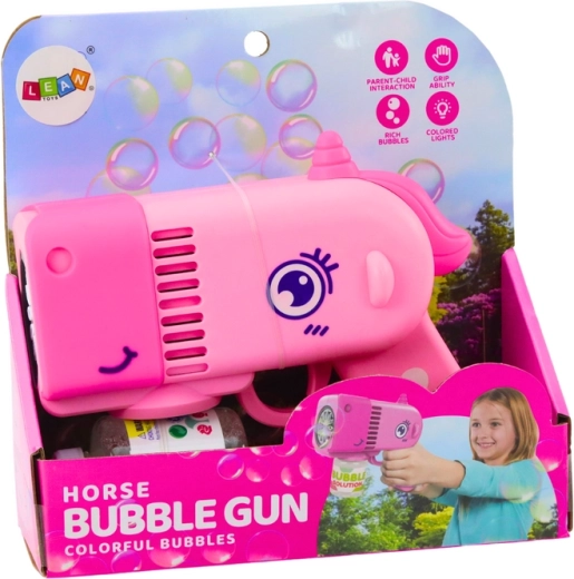 Zábavná pistole na mýdlové bubliny ve tvaru roztomilého dinosaura v růžové barvě potěší každé dítě. Díky kompaktním rozměrům se skvěle hodí na procházky i výlety a velmi snadno se ovládá – stačí stisknout tlačítko a vyletí spousta barevných bublinek. Přiložený roztok se našroubuje přímo do pistole, takže se nic nerozlévá. Hračka je vyrobena z odolných a netoxických materiálů, má LED světelné efekty, splňuje CE a EN71 a je určena pro děti od 3 let.