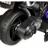 Elektrická motorka GTM1188 vyniká robustním korpusem, který pevně spojuje všechny části a působí masivněji než běžné modely. Integrované stupačky zvyšují stabilitu a jistotu při nasedání i jízdě, zatímco boční pomocná kolečka jsou diskrétně ukryta, aby nenarušovala realistický vzhled.