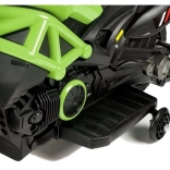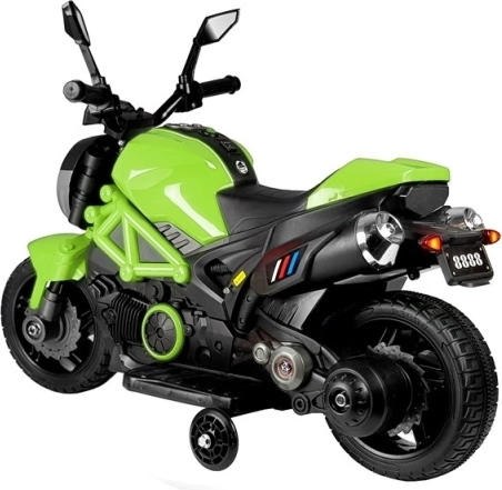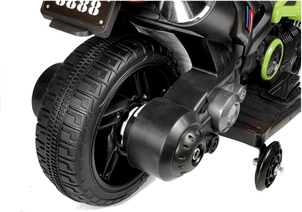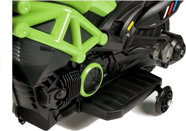 Model GTM1188 se odlišuje robustním tělem bez zbytečných otvorů, takže působí bytelně a jistě i přes kompaktní rozměry. Integrované stupačky zvyšují pocit stability, zatímco skrytá boční kolečka neruší design a nenápadně podporují rovnováhu začínajících jezdců. Motorka je doplněna o zpětná zrcátka, dvojitou koncovku výfuku a držák na dětskou poznávací značku.