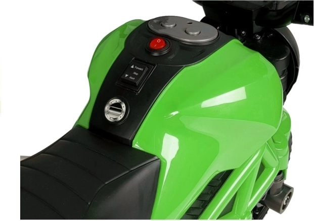 Ovládání je jednoduché: na nádrži najdete hlavní vypínač a přepínač směru jízdy (vpřed, vzad, neutrální). LED světlomet na přídi umí svítit v několika barvách, což dodává jízdě atraktivní efekt. Motorka je vhodná pro děti od 3 let, bez dálkového ovládání pro rodiče, a splňuje evropské normy s certifikací CE.