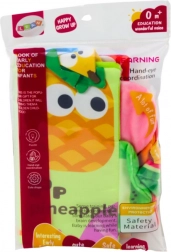 Tato lehká a odolná textilní knížka zaujme miminka pestrými ilustracemi ovoce a interaktivními detaily. Měkké stránky při dotyku šustí, pískátko láká k mačkání a vystouplé prvky lákají k uchopení, což přirozeně rozvíjí hmat, sluch a koordinaci oko–ruka. Anglické názvy ovoce napomáhají prvnímu seznamování se slovíčky hravou formou.