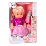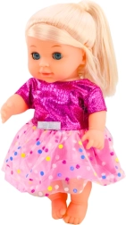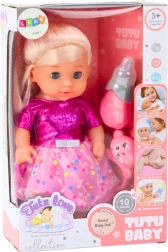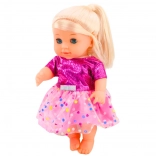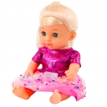 Tato půvabná panenka s blond vlásky a modrýma očima je ideální pro nápodobu péče o miminko. Díky pohyblivým ručičkám, nožičkám a hlavičce ji snadno posadíte i položíte a realistická funkce čůrání po napití z lahvičky přidává hře na autentičnosti.