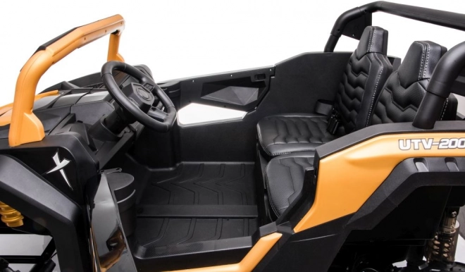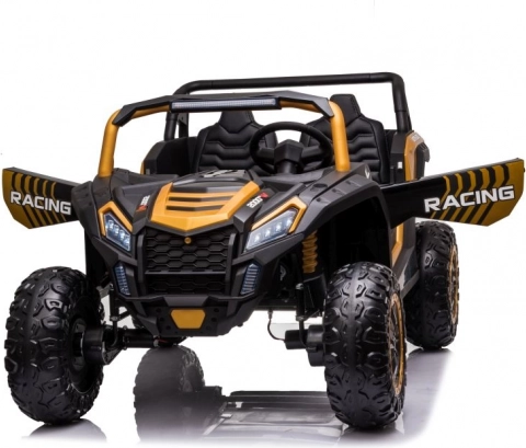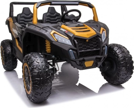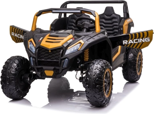 Toto terénní elektrické auto pro děti v atraktivní černo‑zlaté kombinaci je stavěné na dobrodružství. Velká, hluboce vzorkovaná EVA kola zajišťují tichou a stabilní jízdu na trávě, štěrku i dlažbě, zatímco výkonný 24V systém s kapacitou 14Ah poskytne delší dojezd a plynulé rozjezdy.