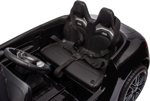Autíčko nabízí komfort dvou sedadel se zabezpečovacími pásy, přehledný kokpit se sportovním volantem a kvalitní konstrukci z odolného plastu. Otevírací dveře a výrazné světelné prvky podtrhují luxusního vozu.