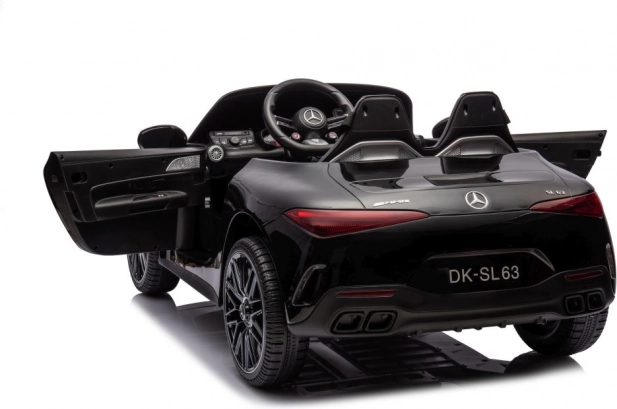 Stylové dětské elektrické autíčko MERCEDES AMG SL63 v elegantní černé barvě přináší realistický zážitek z jízdy díky detailnímu zpracování, otevíracím dveřím, sportovnímu volantu a dvěma sedadlům s pásy. Ideální pro malé řidiče, kteří milují luxusní design a zábavu na čerstvém vzduchu.
