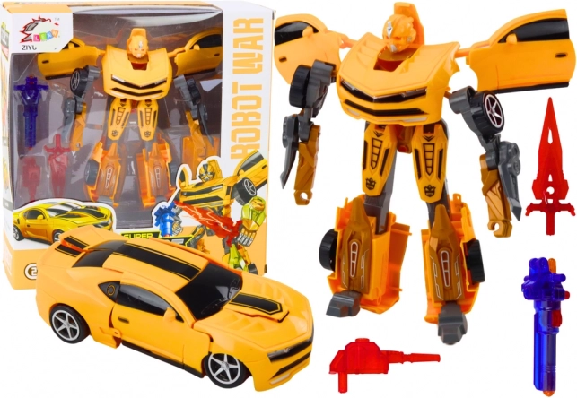 Žlutý auto-robot 2v1 je skvělou volbou pro děti, které si oblíbily futuristické hračky. Aerodynamický design sportovního auta a jeho detailní provedení dodávají modelu realistický vzhled. Hračka je vyrobena z kvalitních materiálů, které zaručují její odolnost a trvanlivost.