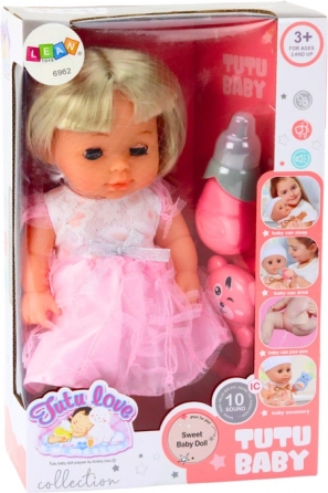 Na bříšku panenky je reproduktor, který po stisknutí tlačítka vydává různé zvuky, které mohou napodobovat různé emoce a chování miminka. To stimuluje dětskou představivost a pomáhá rozvíjet sluchové a kognitivní dovednosti.