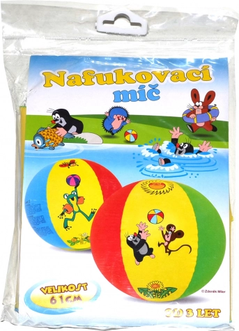Veselý nafukovací plážový míč Krtek o průměru 61 cm. Ideální k vodě, na pláž i zahradu. Lehký, snadno nafukovatelný a zábavný pro celou rodinu.