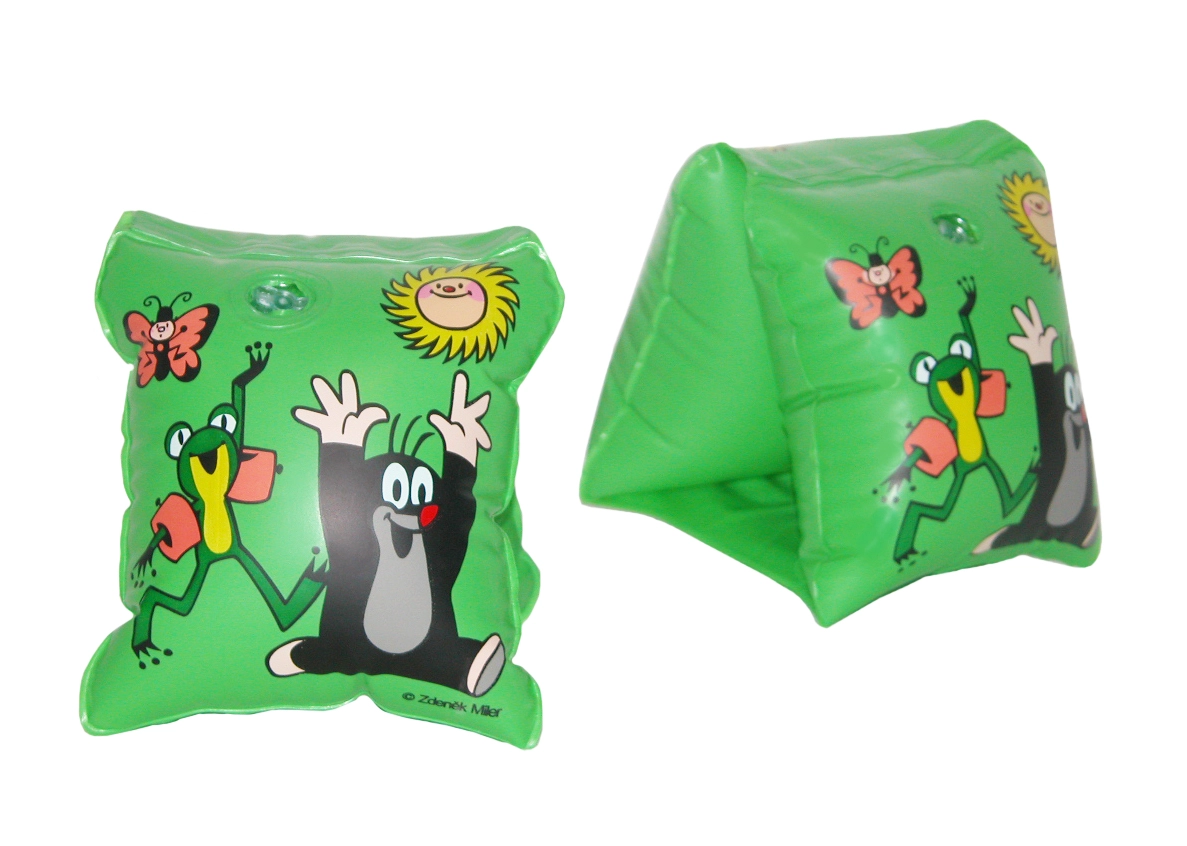 Barevné potisky s postavičkou KRTEK a jeho kamarády podporují radost z vody a zvyšují viditelnost dítěte při hraní i učení plavání.