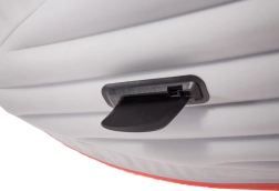 Dvě nafukovací sedačky s opěradly a dvouúrovňové opěrky nohou umožňují přizpůsobit posed různým výškám a stylům pádlování.