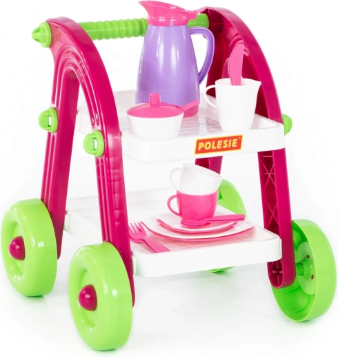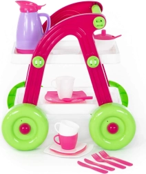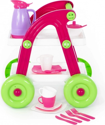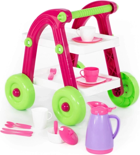 Rozkošný dětský čajový vozík s nádobíčkem přináší hodiny zábavy při hře na hostinu. Díky kompaktním rozměrům a lehké konstrukci se snadno ovládá a je ideální pro malé ručky. Součástí jsou šálky, talířky, konvička a příbory pro kreativní hraní. Bezpečné plastové provedení, snadná manipulace a vhodné pro děti od 3 let.