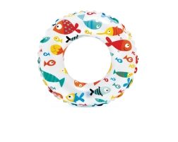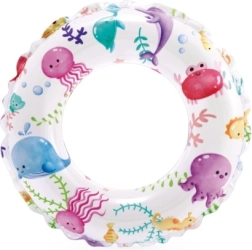 Tento dětský nafukovací kruh je perfektní volbou pro první vodní radovánky. Lehká konstrukce a odolný PVC materiál zajišťují stabilitu a pohodlí při plavání i dovádění ve vodě. Veselé motivy rybiček, mořských tvorů, zmrzlin a ovoce potěší každé dítě a zpestří letní dny.