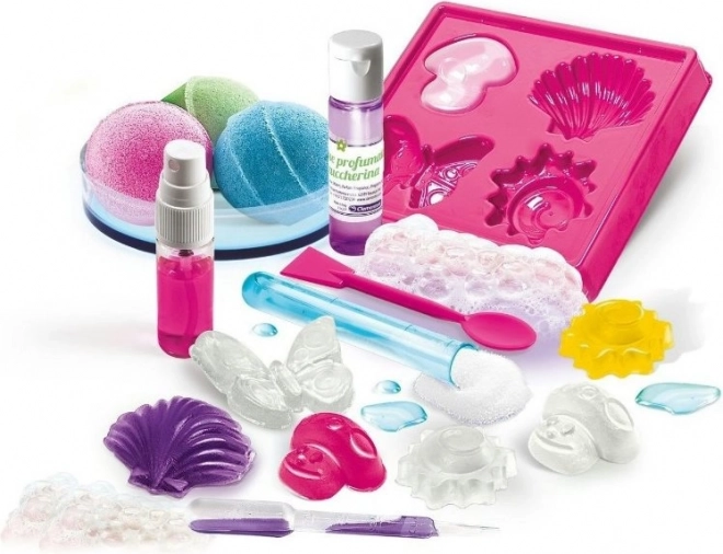 Sada Clementoni Science&Play přináší dětem jedinečnou možnost proniknout do světa kosmetiky a chemie zábavnou formou. Díky praktickým pomůckám a ilustrovanému návodu si snadno vytvoří vlastní mýdla i barevné, voňavé bomby do koupele.